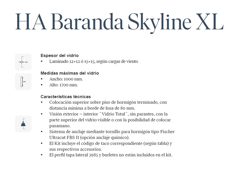 Baranda HA XL Sistema con anclaje de alta resistencia y visión total del vidrio desde el exterior. Barandas en Acero Inoxidable Barandas de Vidrio Por favor, activa JavaScript en tu navegador para completar este formulario.Por favor, activa JavaScript en tu navegador para completar este formulario.Nombre y Apellido *NombreApellidosCorreo electrónico *Comentario o mensajeEnviar