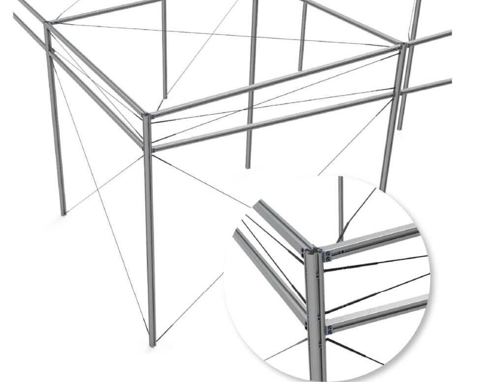 ¿Como es el sistema? La próxima generación de invernaderos Hoy, cada vez más agricultores están confiando en los invernaderos para la siembra de cultivos. En Aluminio Gonella decidimos apostar por la innovación y diseñar un nuevo sistema de invernadero rentable y productivo. Sus estructuras de aluminio modulares industriales y de fácil armado llevan el concepto de invernadero a otro nivel: Mejoran el rendimiento hasta en un 100%. Optimizan y potencian la producción agrícola orgánica. Reemplazan la madera por el aluminio. Incluyen un sistema de refuerzo por tensores, tornillería y aislantes entre materiales.