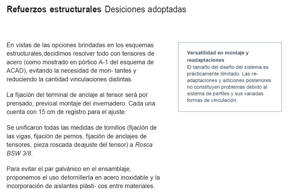 CIRSOC 101 Reglamento argentino de cargas permanentes y sobrecargas mínimas de diseño para edificios y otras estructuras. CIRSOC 102 Reglamento argentino de acción del viento sobre las construcciones. CIRSOC 201 Reglamento argentino de estructuras de hormigón. CIRSOC 701 Reglamento argentino de estructuras de aluminio. Sin problemas con el agua de condensación Varios sistemas de techado, un agua o 2 aguas y de venti lación lateral y/o frontal