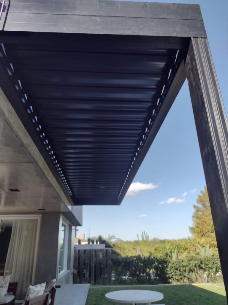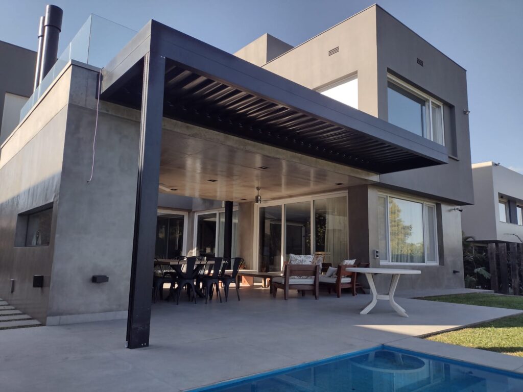 En Aluminio Gonella diseñamos un sistema de pergola automatizada para satisfacer la necesidad de un cliente que quería aprovechar el espacio y extender su galería sin perder la interacción con el exterior y la entrada de luz.